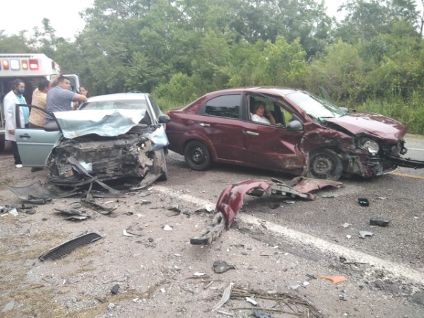 Ambos viajaban en el automóvil Chevrolet Aveo guinda, que se presume ocasionó el accidente, pues invadió carril.