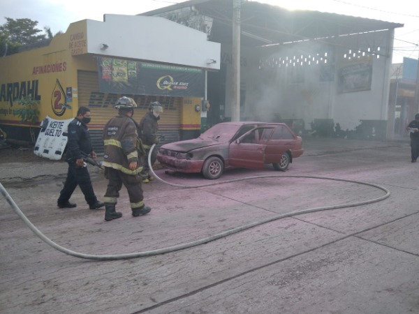 Pero al parecer sufrió una falla eléctrica, por eso empezó a incendiarse del motor, y aunque llegaron a su auxilio los elementos del Cuerpo de Bomberos, y policías municipales, al coche se le quemó todo el motor.