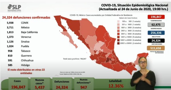 De las nuevas defunciones, se dio a conocer que las víctimas corresponden a dos mujeres y tres hombres; una persona de 50 a 59 años y cuatro de 65 y más, con residencia en los municipios de la capital, Soledad de Graciano Sánchez, Salinas de Hidalgo, Tamasopo y Tamazunchale; mismas que presentaban como antecedentes factores de riesgo de, la primera persona obesidad y edad; la segunda diabetes, hipertensión y edad; la tercera diabetes, hipertensión, obesidad, edad e inmunosupresión; la cuarta persona diabetes y enfermedad y la quinta víctima diabetes, hipertensión y edad, cuyas defunciones ocurrieron los pasados tres personas el 22 de junio y dos el 23 de junio.