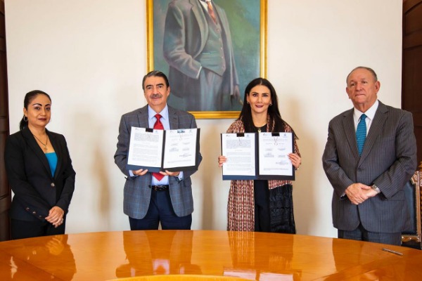 En la Salas de Rectoría de la Máxima Casa de Estudios, Erika Velázquez Gutiérrez, directora general del Instituto de las Mujeres del Estado (IMES) y el Rector de Universidad Autónoma de San Luis Potosí (UASLP), Alejandro Javier Zermeño Guerra, signaron un convenio de colaboración para la Implementación de proyectos y acciones enfocadas a promover la igualdad de género y erradicación de la violencia contra las mujeres.