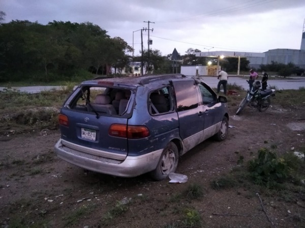 Este domingo alrededor de las 6:30 de la mañana, se registró la volcadura de una vagoneta marca Toyota color azul, con placas de San Luis Potosí.
