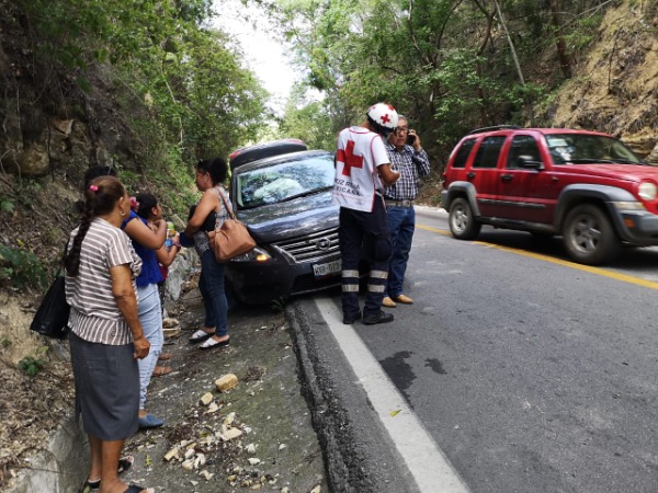El día de hoy alrededor del mediodía, un vehículo Nissan color gris, de modelo reciente, se salió del camino y chocó contra un cerro, en el kilómetro 16 de la carretera libre Valles-Rioverde.