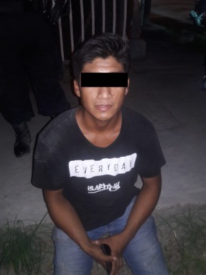 La detención sucedió sobre la calle San Luis en la colonia Tipzen cuando Los vigilantes realizaban recorridos y detectaron al joven que cargaba con el tanque.