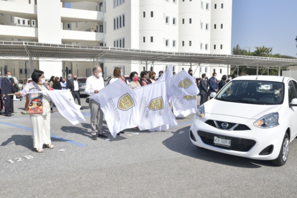 Posteriormente, dieron el banderazo de salida de cinco vehículos que estarán al servicio de los Juzgados de la capital del estado y de Soledad de Graciano Sánchez.