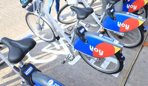La zona de Servicio de Bicicletas Compartidas "YOY Bike Sharing", cuenta con equipo de señalización en el piso y de manera vertical a la vista de todos, para que la gente conozca el nuevo sistema de movilidad urbana innovadora en la Capital de San Luis Potosí, que ofrece al usuario seguro de gastos médicos mayores y de responsabilidad civil, con horario de servicio de 6 de la mañana hasta las 9 de la noche.