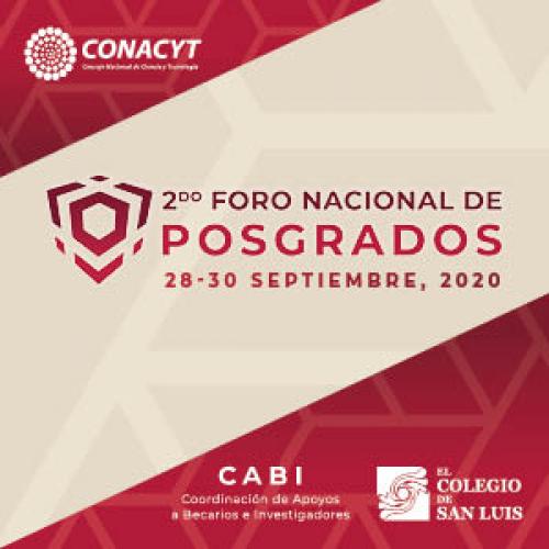 El Consejo Nacional de Ciencia y Tecnología (CONACYT), a través de la Coordinación de Apoyos a Becarios e Investigadores, invita al Segundo Foro Nacional de Posgrados "Repensando prácticas y construyendo nuevos caminos", que se realizará del 28 al 30 de septiembre en El Colegio de San Luis.