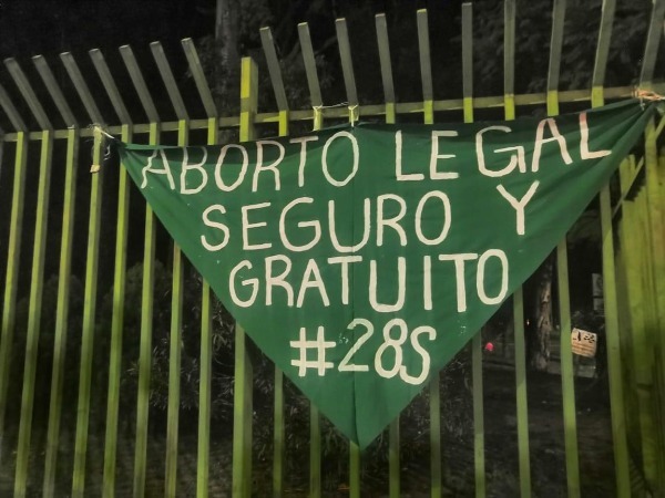 Colocaron pañuelos gigantes para conmemorar el día de Acción Global por el acceso al aborto libre y seguro