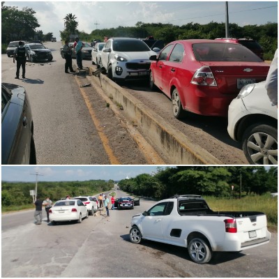 Esta tarde, el dirigente de la Conatram, Reyes Espinoza Corral, provocó una carambola vehícular, en la Intersección de la carretera federal Valles-Tampico y el Libramiento Oriente, cerca del cuartel militar.
