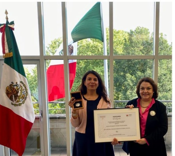 El reconocimiento "Mexicanos Distinguidos" fue otorgado a la doctora Laura Murguía-Goebel, profesora de Derecho mexicano e hispanoamericano en la Universidad de Würzburg, quien, como ciudadana mexicana se ha destacado por su liderazgo y trayectoria profesional sobresaliente en esa universidad, promoviendo el intercambio académico y estudiantil entre instituciones mexicanas y alemanas.