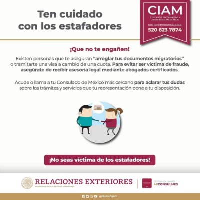 La dependencia alerta a no dejarse engañar por quienes se ostentan como agentes en el trámite de visas.