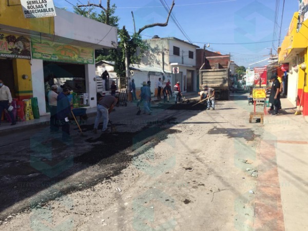 Inician los trabajos de reparación de la calle Niños Héroes de la colonia zona centro que se encontraba muy dañada y era un peligro para los vehículos que circulan por esta arteria, y también para los comerciantes que se ubican en esta calle ya que han pasado varias ocasiones que les han pegado a sus puestos porque los carros pasan muy cerca de ellos para evitar caer al enorme hoyanco que ahí se formó.