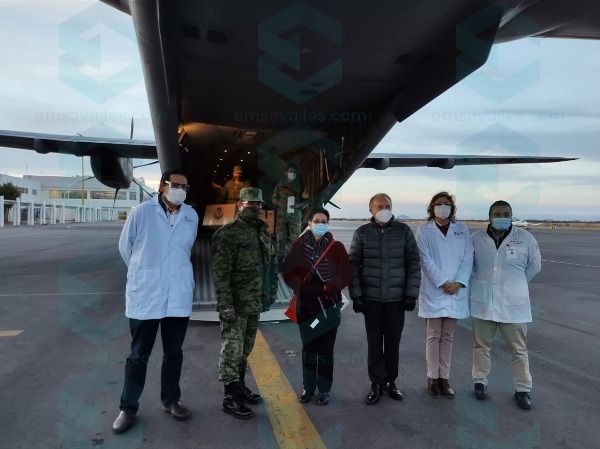 El primer cargamento fue recibido por el gobernador del Estado Juan Manuel Carreras López, la titular de los Servicios de Salus, Mónica Liliana Rangel Martínez y el Comandante de la Doceava Zona Milital, Guzmar Ángel González.