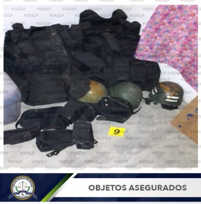 La Fiscalía General del Estado de San Luis Potosí (FGESLP) logró el aseguramiento de varios paquetes de droga, armas largas, equipo táctico y garrafas de una sustancia que se analiza para saber su composición química, en un domicilio ubicado en de Matlapa.