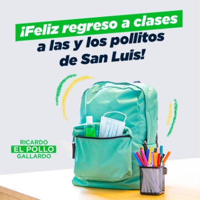 Con esta publicación en su perfil social, el gobernador electo de SLP, Ricardo Gallardo Cardona, desea a todos los pollitos y pollitas de la entidad, un feliz regreso a clases.
