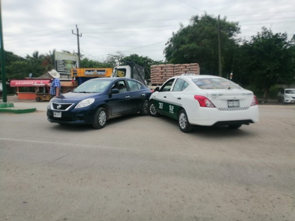 Sin embargo sobre dicha carretera circulaba el coche azul, cuyo conductor maniobró a la izquierda para ingresar a la Colonia Francisco Villa, y fue entonces cuando el taxi chocó contra el vehículo particular. Afortunadamente nadie salió herido.