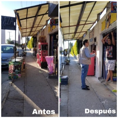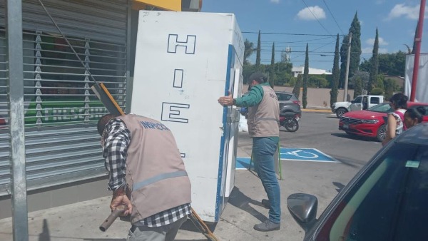 Los principales objetos que se han retirado son anuncios tipo tijera, anuncios tipo bandera, mesas, sillas, toldos, módulos, bocinas, cajas, mercancía y diversos objetos.