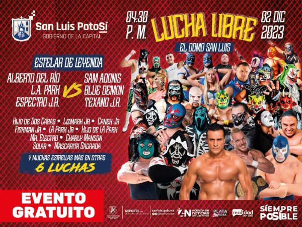 Llegó el momento en el que la numerosa y noble afición potosina a la lucha libre podrá disfrutar de una espectacular función, este sábado 2 de diciembre, en punto de las 16:30 horas, cuando se presente en San Luis Potosí lo mejor de la lucha libre en México, en el gran evento organizado por el Gobierno de la Capital, en donde Alberto el "Patrón" del Río, Blue Demon Jr y Sam Adonis, acompañados de una gran constelación de exponentes, se den cita en el Domo Centro de Espectáculos.