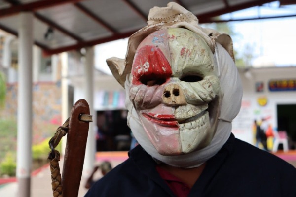 Las máscaras, talladas en madera de pemuche (Erythrina americana), un árbol característico de la región, son el rostro simbólico de los Diablos de Tanlajás. Cada una de estas piezas es única, moldeada a mano por expertos artesanos que han perfeccionado sus técnicas a lo largo de generaciones. Desde la suave textura de la madera recién cortada hasta la meticulosa decoración, las máscaras reflejan el carácter y la esencia de esta celebración tradicional.