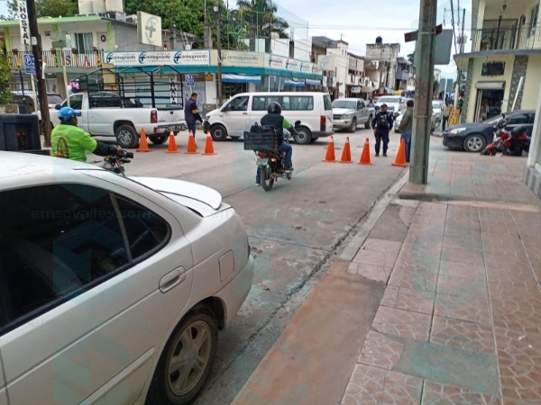 Este miércoles, autoridades municipales implementaron un operativo especial para el cierre de las calles 16 de Septiembre y Galeana, en el primer cuadro de la ciudad, debido a la llegada de la Antorcha Guadalupana a la Catedral de Ciudad Valles.