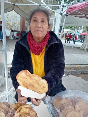 debido a lo laborioso del proceso. "Yo preparo todo con mucho cuidado. La masa lleva harina, manteca, carbonato, y un toque de canela. Los buñuelos los amaso y los frío en lumbre con leña, porque el gas está caro y además le da un sabor especial," explicó.