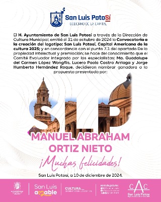 - El logotipo ganador podrá ser usado a partir del mes de enero, de acuerdo con los eventos programados del H. Ayuntamiento de San Luis Potosí durante todo 2025.
