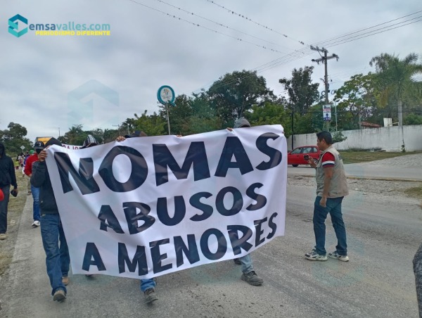 La manifestación inició en la carretera Valles-Mante y avanzó hasta las instalaciones de Cinemex, sobre el bulevar México-Laredo, generando tráfico lento en la zona.