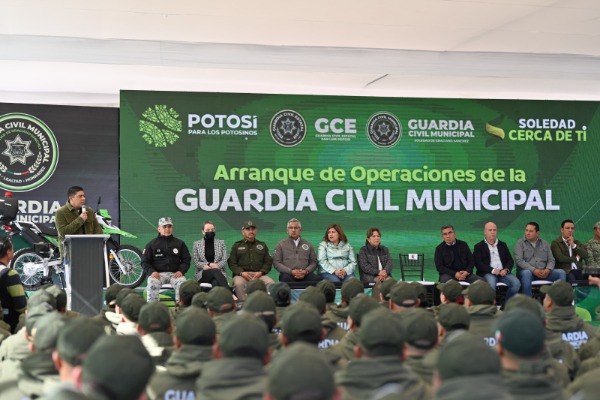 Para brindar más apoyo a las familias con seguridad, paz social y protección del patrimonio e integridad ciudadana, además de armonizar la estrategia de seguridad para hacer más efectivo el combate a la delincuencia, el Gobernador de San Luis Potosí, Ricardo Gallardo Cardona, acompañado del presidente municipal, Juan Manuel Navarro Muñiz, encabezó el arranque de operaciones y entregó equipamiento a la Guardia Civil Municipal de Soledad de Graciano Sánchez, con una inversión de 26.4 millones de pesos.