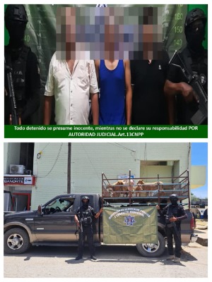 Los tripulantes fueron identificados como José Luis "N", de 36 años; Pragedis "N", de 64; y Brayan "N", de 20. Todos quedaron bajo arresto y fueron turnados ante la Fiscalía General del Estado, que determinará su responsabilidad por el presunto delito de abigeato.