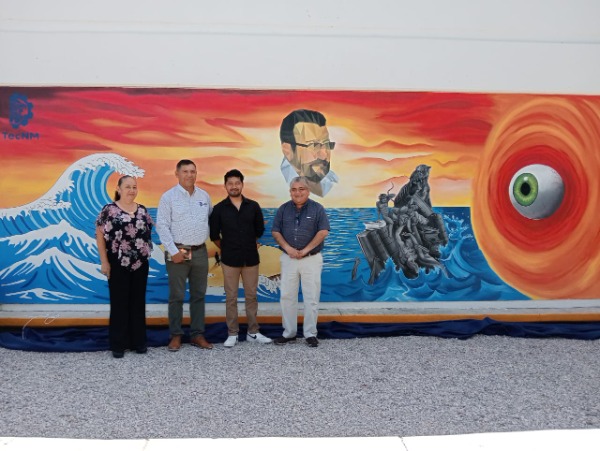 El artista Fernando Torres Carrizales presentó su primer mural en honor al psicólogo y maestro Alberto Enríquez, una obra que plasma la vida y legado de quien fuera profesor de la institución tecnológica local.