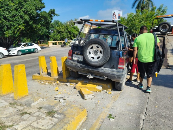 Tras el impacto, el conductor de la camioneta perdió el control del volante y terminó subiéndose al camellón central, dañando el muro de concreto que protege a los peatones.