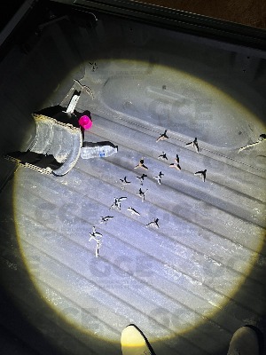 Se le marca el alto al conductor haciendo caso omiso, por lo cual se inicia una persecución con dirección la carretera Moctezuma-Morterillos no siendo posible darle alcance. Minutos después, los agentes estatales visualizan a la orilla de la Carretera Estatal Moctezuma-Morterillos, Km 01+500, Pozo Blanco, a un grupo de personas que al notar su presencia huyeron del lugar hacia la maleza y dejando varios vehículos abandonados.
