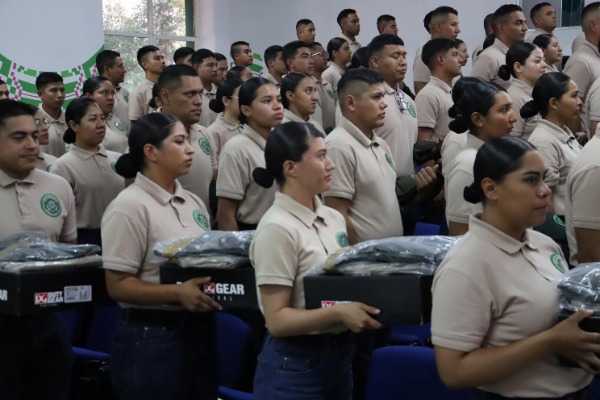 Como parte del apoyo sin límites que el Gobierno del Estado mantiene en materia de seguridad pública, el Secretario Estatal de Seguridad, Jesús Juárez Hernández y la titular del Secretariado Ejecutivo del Consejo Estatal de Seguridad, Noemí Proal Huerta, hicieron entrega de 170 uniformes completos para las y los alumnos próximos a graduarse de la cuarta generación de la Guardia Civil Estatal.