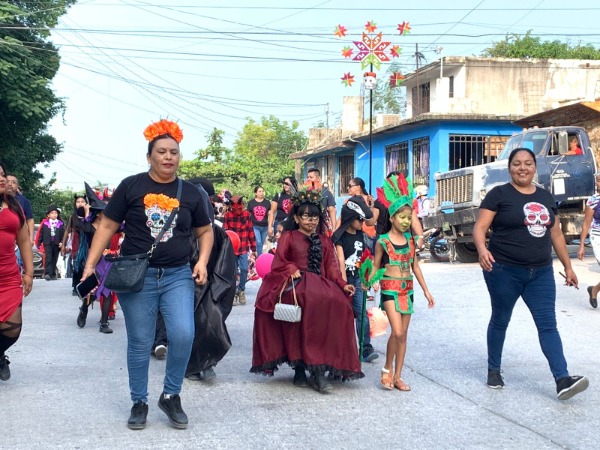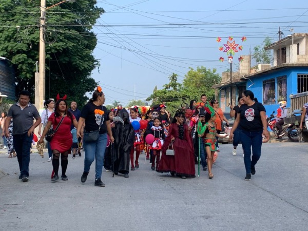 En la colonia Infonavit 1, los alumnos de la Escuela Primaria Profesor Graciano Sánchez recorrieron las calles Aztecas y Toltecas, acompañados por padres de familia y maestros que no dudaron en sumarse a la fiesta. Con disfraces de catrinas, calaveras, y carros alegóricos decorados con flores de cempasúchil, los pequeños demostraron su entusiasmo por una de las tradiciones más emblemáticas de la Huasteca.