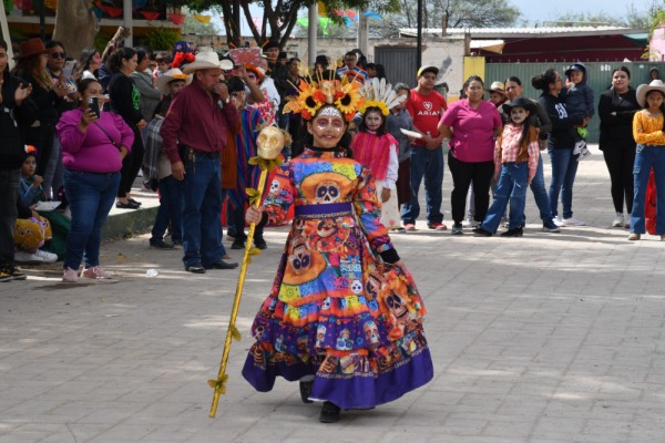 Con el impulso y respaldo del Alcalde Juan Manuel Navarro Muñiz, este miércoles, se realizó un desfile de comparsas con estudiantes caracterizados como catrinas y calaveritas, además de concursos de altares y disfraces, donde la Administración municipal otorgó incentivos económicos a los ganadores, así como apoyo logístico para beneficiar directamente a las y los participantes y fortaleciendo la participación comunitaria.