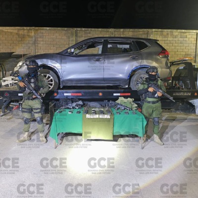 Luego de un operativo de seguridad para dar con el paradero de hombres armados, la Guardia Civil Estatal, logró el aseguramiento en la localidad de Santa Rita de una camioneta, armas de fuego y artefactos metálicos conocidos como "poncha llantas".