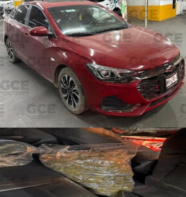 Dentro de la unidad un Chevrolet Cavalier color rojo, se encontraron varias bolsas de plástico en la parte posterior, las cuales eran 120 en cuyo interior contenían marihuana, haciendo un total de 1.8 kilógramos.