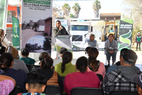 El Alcalde de Soledad de Graciano Sánchez, Juan Manuel Navarro Muñiz, dio el banderazo de arranque al proyecto de transformación urbana de la colonia Alcatraces, con la pavimentación de varias calles, entre ellas, Acacias, que actualmente es de tierra, piedras y su estado es irregular para el tránsito de personas y automóviles; el arranque de rehabilitación comprende de la calle Guamúchil a la avenida Bellavista, otras vialidades de privadas y la construcción de un área común para beneficio de toda la comunidad.