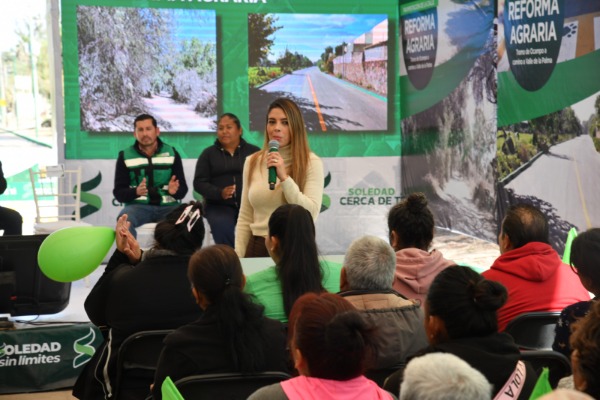 Juan Manuel Navarro Muñiz, Alcalde de Soledad de Graciano Sánchez, encabezó este día la inauguración de una de las obras más importantes en materia de movilidad y desarrollo urbano del municipio, la pavimentación de la avenida Reforma Agraria en Fracción Rivera, acompañado por la senadora Ruth González Silva, como invitada especial; el edil destacó que esta acción representa la transformación tangible que impulsa el Gobierno Municipal con el respaldo del Gobernador del Estado, Ricardo Gallardo Cardona.