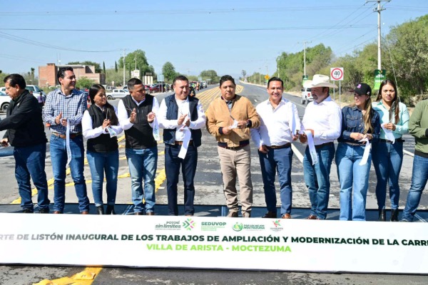El Gobernador de San Luis Potos铆 Ricardo Gallardo Cardona, inaugur贸 la ampliaci贸n y modernizaci贸n de la Carretera Villa de Arista鈥揗octezuma, proyecto que brinda una movilidad sin l铆mites, seguridad y ahorro en tiempos de traslados de transportistas, agricultores, estudiantes, habitantes y turistas en sus 23.4 kil贸metros de longitud, dos carriles y acotamientos, cuyo monto de inversi贸n ascendi贸 a los 466 millones de pesos.