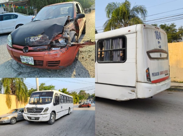 En un cruce de la colonia Tipzen sucedió un choque entre un autobús urbano y un vehículo Chevrolet Chevy, dejando a una persona con lesiones menores.