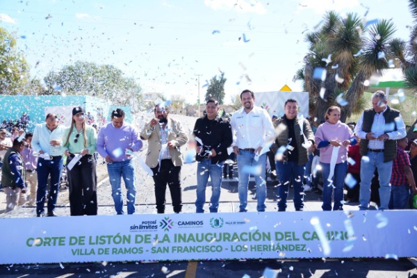 El Gobernador de San Luis Potosí, Ricardo Gallardo Cardona, entregó en Villa de Ramos el camino rehabilitado que conecta la cabecera municipal con las comunidades de San Francisco y Los Hernández, lo que beneficiará a más de 5 mil personas en sus 9.4 kilómetros de longitud, cuya inversión fue de 26 millones de pesos.