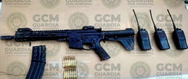 En el operativo policial también se encontró un arma larga con un cargador abastecido, tres radiofrecuencias, dos pasamontañas, pagarés y dos camionetas: una Dodge Journey color rojo y una Pick Up color negra.
