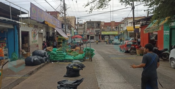 Además, se observó que los fruteros y bodegueros continúan apartando espacios con obstáculos y vehículos, sin cumplir con ninguna medida de higiene, lo que genera un ambiente sucio y desordenado alrededor de los mercados. Motos estacionadas en lugares indebidos y puestos abandonados en plena calle complican aún más el tránsito.