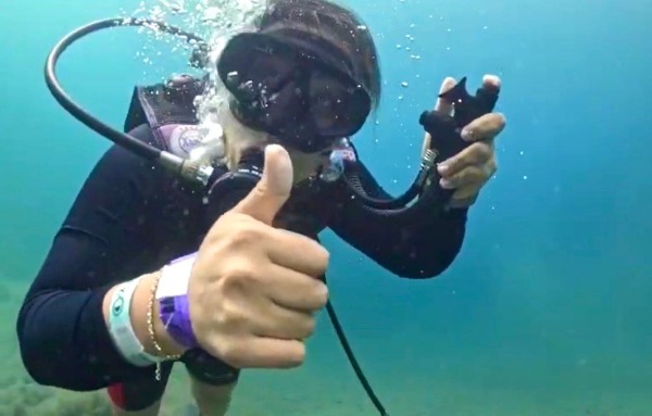 La buzo profesional Oyuky Wong Villeda relató que la parte más sorprendente del bautismo de buceo en la Media Luna fue lo que encontraron bajo el agua. El grupo descendió hasta 12 metros acompañados del instructor y tomando todas las precauciones. "Lo primero es cuidar la presión del agua en los oídos", explicó.