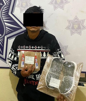 Elementos de la Dirección General de Seguridad Pública y Tránsito Municipal detuvieron a un hombre señalado por el robo de un par de tenis en una sucursal de la cadena Bodega Aurrera.