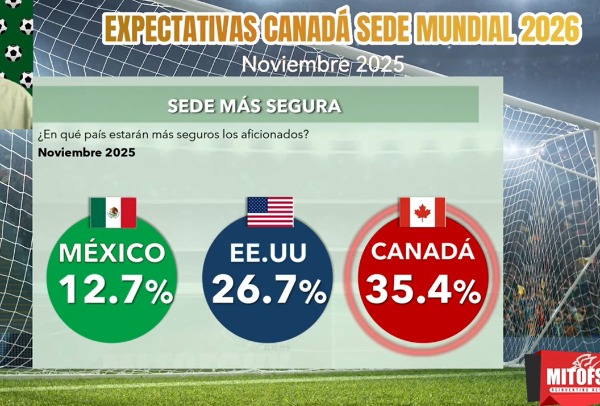 A menos de un año del Mundial 2026, una encuesta de Mitofsky para el diario Ovaciones confirmó algo que los aficionados mexicanos ya sospechaban: México no ofrece la mejor infraestructura ni las mejores condiciones de seguridad para el torneo, pero sí es el país que aportará el ambiente más festivo de toda la copa. Al comparar a las tres sedes, Estados Unidos, Canadá y México, los mexicanos señalaron que el orden y la organización estarán en territorio estadounidense, la seguridad en Canadá, y que México solo destaca por su forma de vivir la fiesta futbolera.
