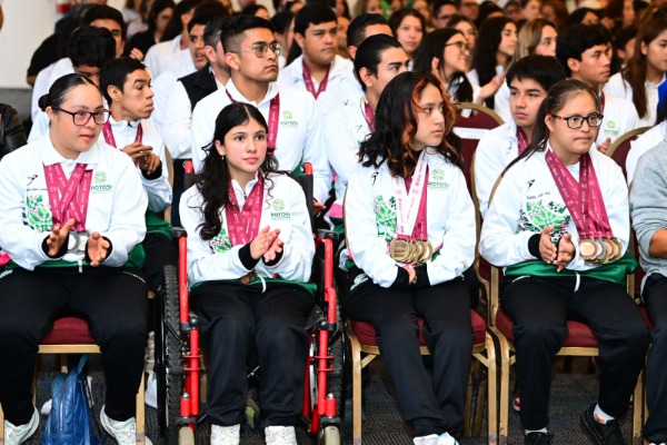 En el Centro de Negocios Potosí, en medio de la alegría de las los jóvenes que pusieron en alto el nombre de San Luis Potosí, el Mandatario Ricardo Gallardo resaltó que en el Estado se cambian vidas a través del deporte, se duplican oportunidades y se mejoran apoyos para motivar a la niñez y juventud potosina "le estamos apostando a ustedes y vamos a seguir confiando en que pueden cumplir sus metas gracias a que viven en un Estado que no tiene límites".