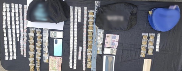 En Monterrey, se detuvo a cuatro personas, entre ellas un menor de edad, se aseguraron 44 dosis de marihuana, 112 de metanfetamina, 51 de cocaína, 20 cigarros de marihuana, tres básculas grameras, cuatro teléfonos celulares y dinero en efectivo.