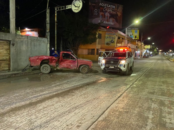 Un aparatoso choque ocurrido la madrugada de este martes en el acceso a la colonia Doracely dejó como saldo a un profesor gravemente lesionado, luego de que una camioneta se pasara la luz roja del semáforo.