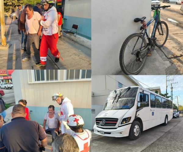 Un ciclista de 67 años terminó hospitalizado tras ser golpeado por un autobús urbano, en un hecho registrado frente al Centro de Salud de la colonia Francisco Villa.